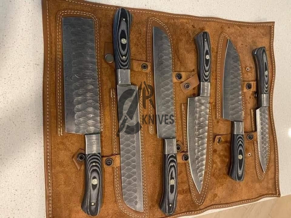 Custom Handmade Laminated Wood Handle Kitchen Knives Set