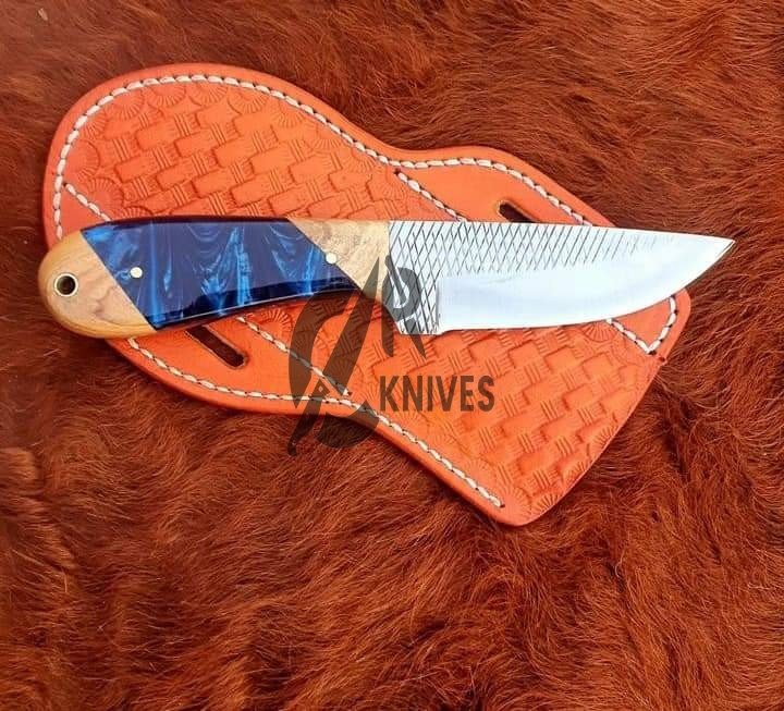Handmade Olive Wood & Resin Handle Cowboy Skinning Knife